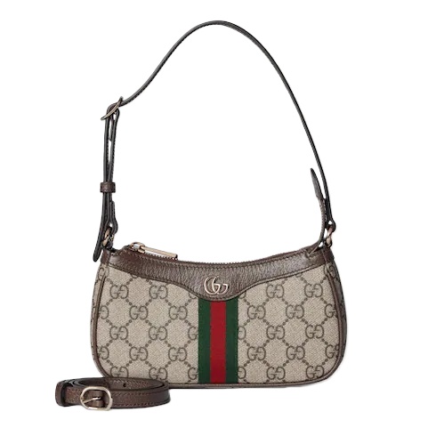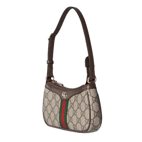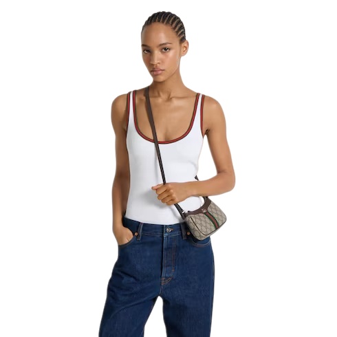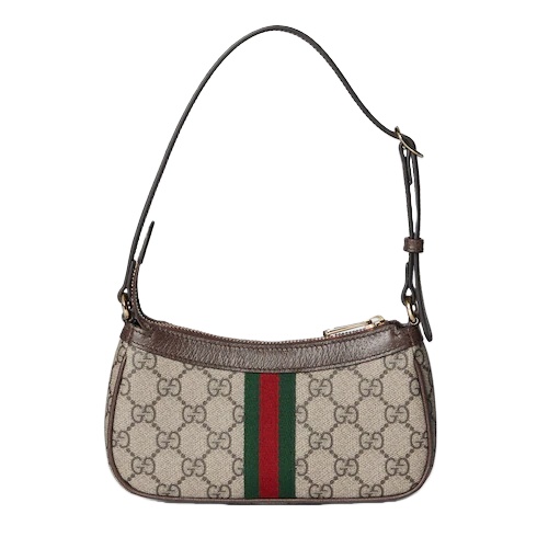 The Ophidia collection evokes the House’s heritage with the signature Web stripe and Double G emblem in light gold-toned finish. The styles are crafted from soft GG Monogram coated fabric, featuring green cotton lining inside.