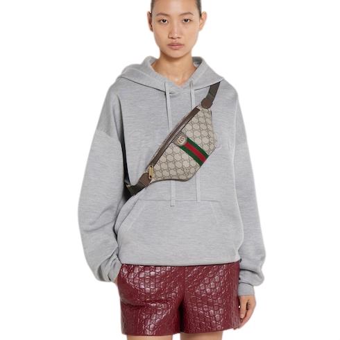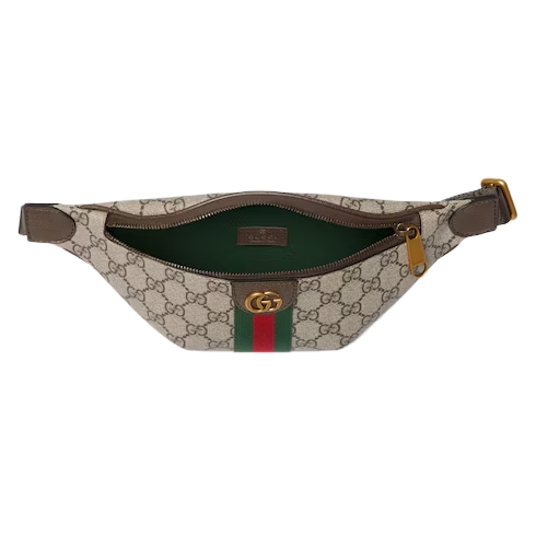 The Ophidia collection evokes the House’s heritage with the signature Web stripe and Double G emblem in light gold-toned finish. The styles are crafted from soft GG Monogram coated fabric, featuring green cotton lining inside.