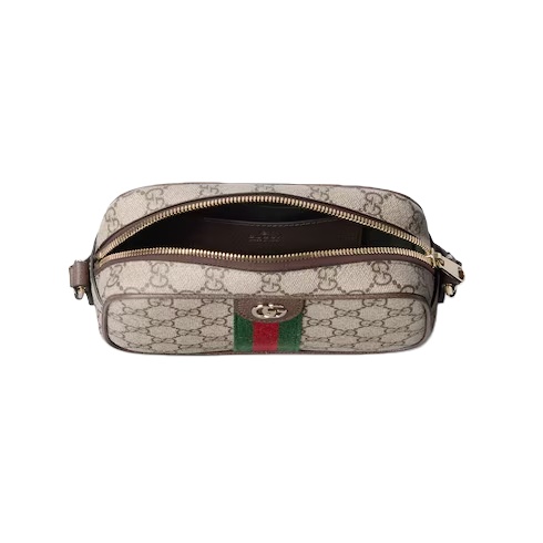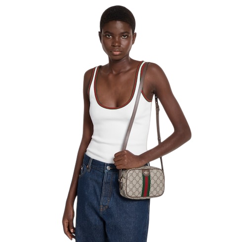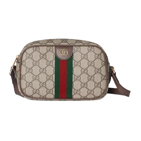 The Ophidia collection evokes the House’s heritage with the signature Web stripe and Double G emblem in light gold-toned finish. The styles are crafted from soft GG Monogram coated fabric, featuring green cotton lining inside.