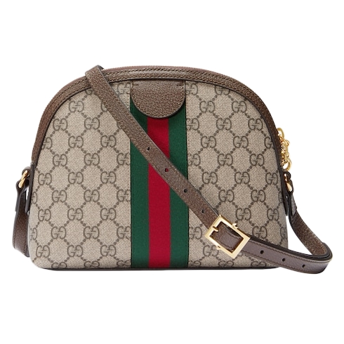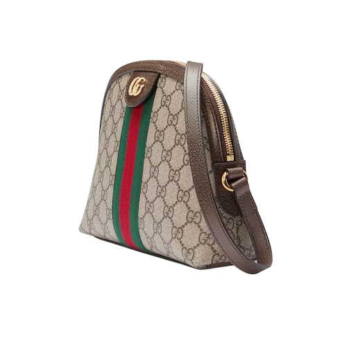 Crafted in GG Supreme with inlaid Web stripe detail, the shoulder bag has a domed shape that recalls vintage designs. The Double G, an archival code, appears on a leather tab detail and on the zipper pull.