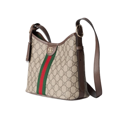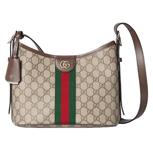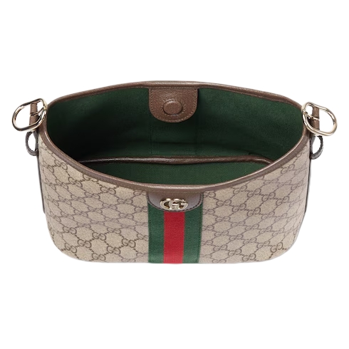 The Ophidia collection evokes the House’s heritage with the signature Web stripe and Double G emblem in light gold-toned finish. The styles are crafted from soft GG Monogram coated fabric, featuring green cotton lining inside.