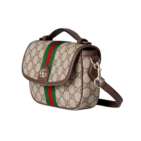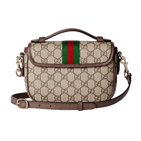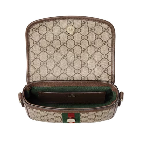 The Ophidia collection evokes the House’s heritage with the signature Web stripe and Double G emblem in light gold-toned finish. The styles are crafted from soft GG Monogram coated fabric, featuring green cotton lining inside.
