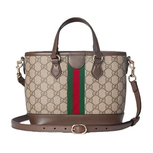 The Ophidia collection evokes the House’s heritage with the signature Web stripe and Double G emblem in light gold-toned finish. The styles are crafted from soft GG Monogram coated fabric, featuring green cotton lining inside.