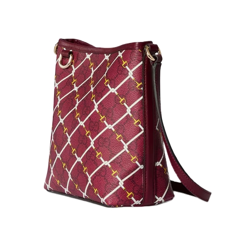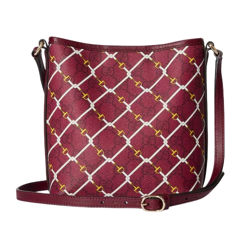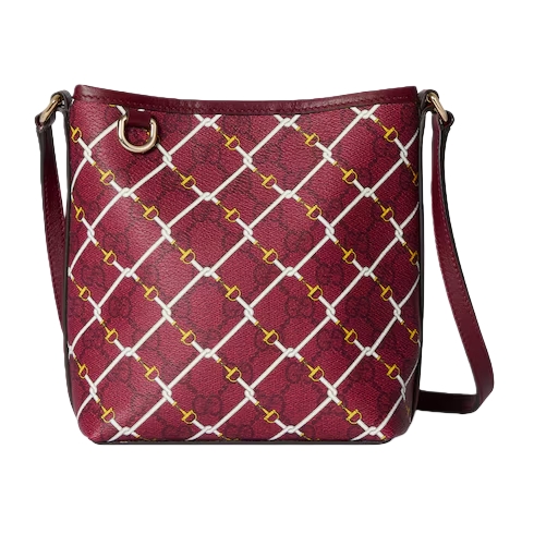 A contemporary Horsebitprint embellishes signature silhouettes with a vibrant touch. Crafted from a laminated-effect GG Monogram coated fabric, this mini bag comes with an additional D-ring for detachable items.
