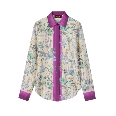 In the Cruise 2026 collection, the House's rich archive of silk foulards imbues ready-to-wear with contemporary sensibility. Floral motifs, gold-toned chains, travelling-inspired subjects are reimagined across fluid silhouettes. Crafted from silk twill, this shirt is defined by an allover floral print.