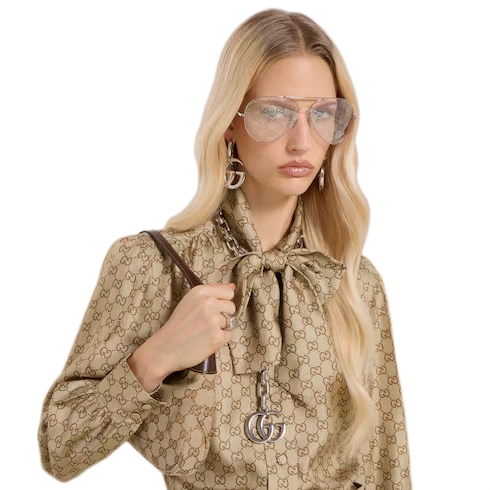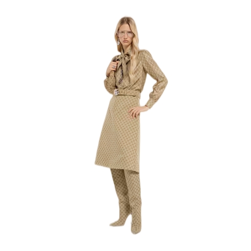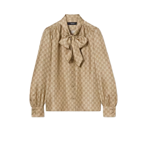 Introducing Spring Summer 2026. This style is featured as part of the "La V.I.P." look of La Famiglia, which reinterprets the House’s codes through singular personalities and distinctive aesthetic attitudes. Crafted from silk twill, this shirt is defined by an allover GG print.