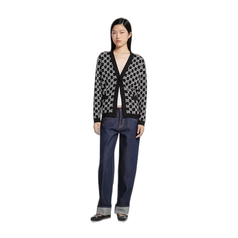 Taking inspiration from founder Guccio Gucci's monogram, the GG motif continues to be a firm favorite of the House. This reversible cardigan is stated in a fine wool tubular GG jacquard stitch and completed with a contrast rib trim.