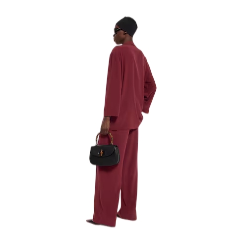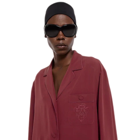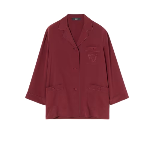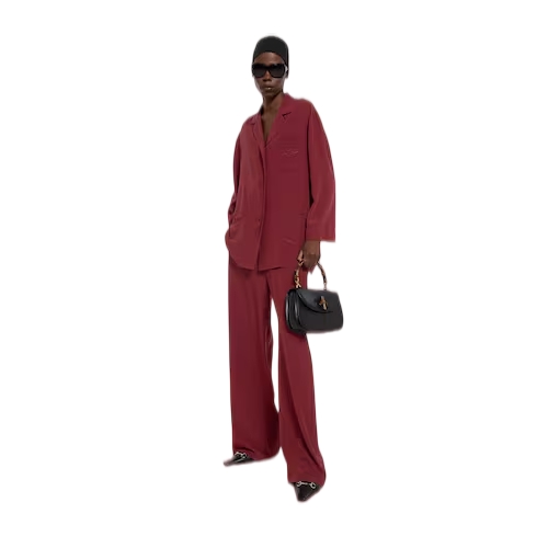 Introducing Spring Summer 2026. This style is inspired by the "Ereditiera" look of La Famiglia. The collection reinterprets the House’s codes through singular personalities and distinctive aesthetic attitudes. Crafted from silk crêpe de chine, this shirt is enriched with a Gucci crest embroidery.