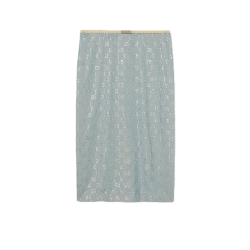 In the Cruise 2026 collection, crystal embroidery creates a sparkling contrast with the texture of emblematic fabrics of the House. Crafted from silk stretch chiffon, this skirt is enriched with allover GG crystals.