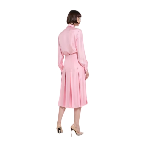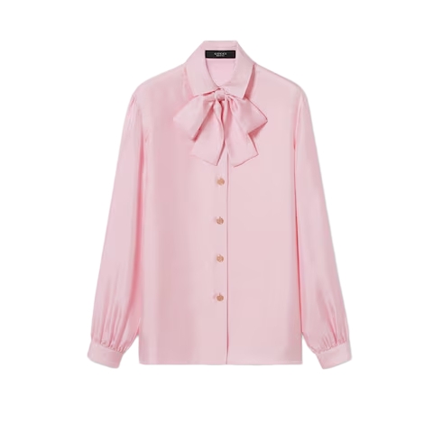Introducing Spring Summer 2026. This style is inspired by the "La Principessa" look of La Famiglia. The collection reinterprets the House’s codes through singular personalities and distinctive aesthetic attitudes. Crafted from silk twill, this shirt is finished with a self-tie bow.