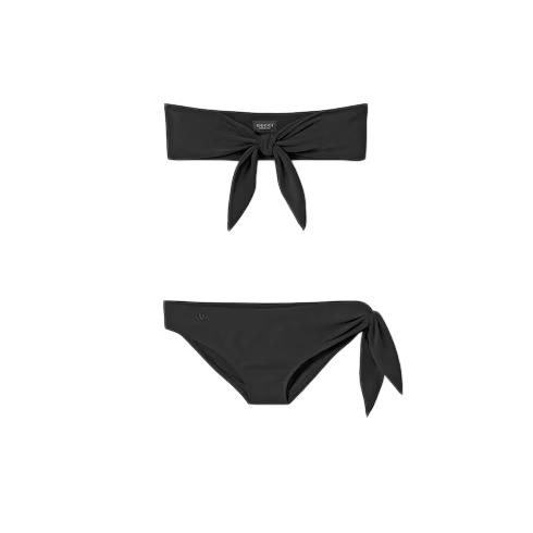 Introducing Spring Summer 2026. This style is part of the La Famiglia collection, which reinterprets the House’s codes through singular personalities and distinctive aesthetic attitudes. Crafted from sparkling jersey, this bikini is defined by a knot detail.