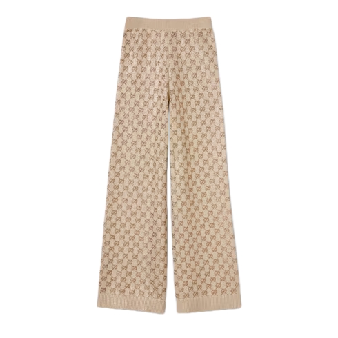 In the Cruise 2026 collection, crystal embroidery creates a sparkling contrast with the texture of emblematic fabrics of the House. Crafted from wool cashmere, this pair of leisure pants is enriched with allover GG crystals.