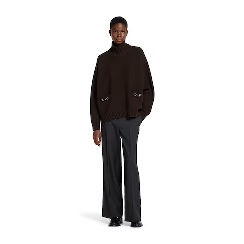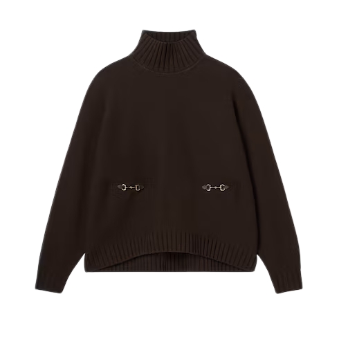 This turtleneck sweater with a dropped appears as part of the collection in a wool cashmere blend. The classic design is enriched with two Horsebit hardware details across the front.
