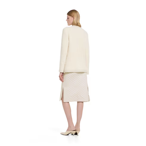 The statement cardigan jacket is a key silhouette of the season. It can be worn on top of a contrasting color, or paired with a mini skirt for harmonious proportions. Crafted from wool lamé bouclé, this cardigan is finished with Interlocking G buttons.