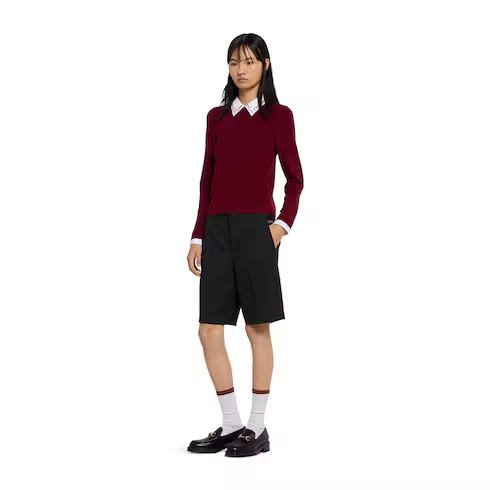 Equestrian symbols embellish signature silhouettes with a vibrant touch. Crafted from light wool, this women's sweater is elevated by a crystal Horsebit detail on the collar.