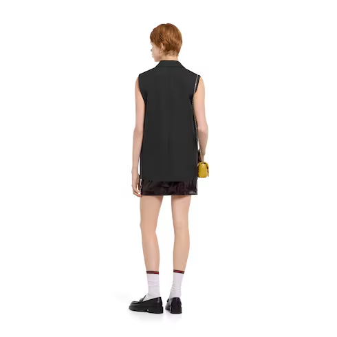 The Cruise 2026 women's ready-to-wear collection celebrates the Gucci wardrobe, blending archival influence with the history of Florence in a playful mélange, ranging from the minimal to the maximal. Crafted from wool, this vest is enriched with a Web insert.