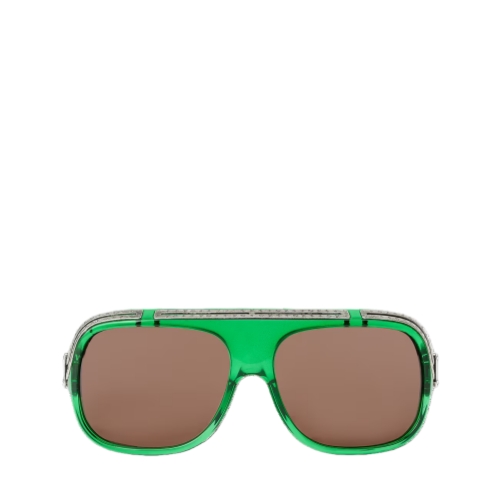 This electric version of the 1.0 Millionaires sunglasses is the epitome of where fashion and luxury come together. The oversized pilot shape coupled with the crystal frame yields a futuristic feel that spirited dressers will favor. Double brow bars engraved with the Monogram and S-lock hinges inspired by those seen in the iconic handbags spotlight the House heritage.