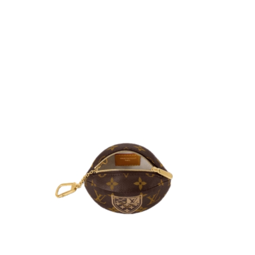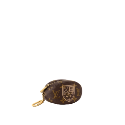 Fashioned from Monogram canvas with textile lining and gold-tone hardware, the Ball Pochette Clés resembles a miniature rugby ball. Alongside the iconic Monogram, it features a coat of arms. A carabiner-style hook allows it to accessorize bags, or even clothing, making it a playful yet functional statement piece.