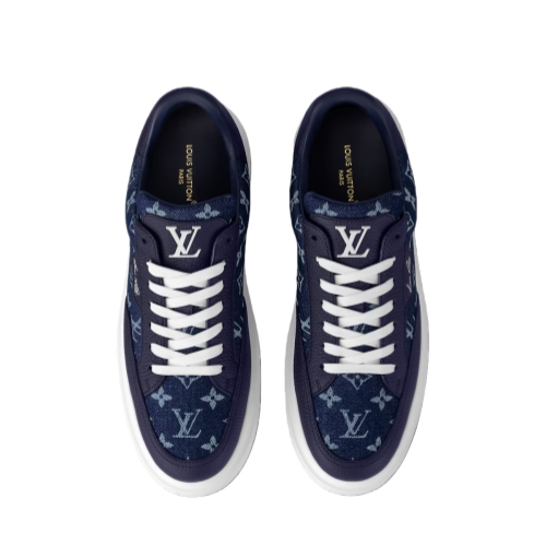The Beverly Hills sneaker is revisited this season in a combination of Monogram denim and grained calf leather. This casual-chic style is distinguished by its chunky, yet extremely lightweight, rubber outsole, which makes it very comfortable to wear. The Louis Vuitton script signature is embossed in silver on the leather trim around the laces.