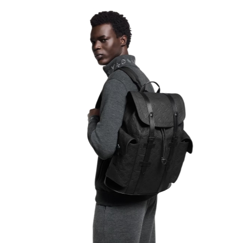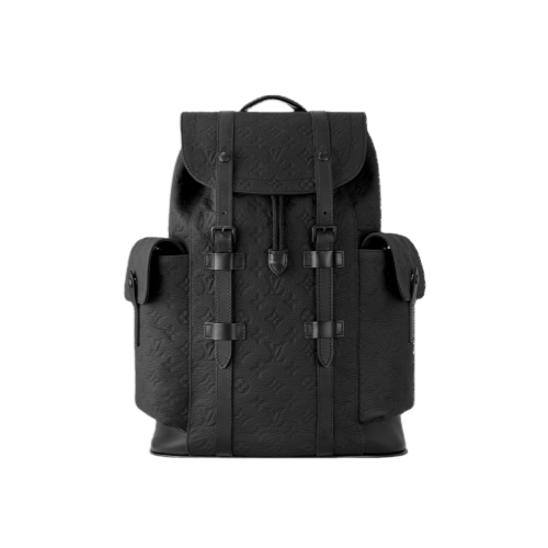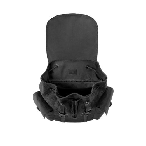 The Christopher MM backpack is a mid-sized backpack with two exterior side pockets and numerous functional pockets inside. Fashioned from Taurillon leather with an embossed Monogram motif, it is finished with black leather straps and matte-black hardware. A drawstring and press-stud closure keeps what’s inside secure.