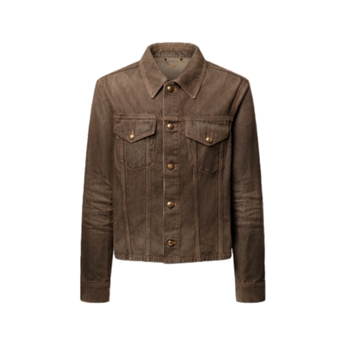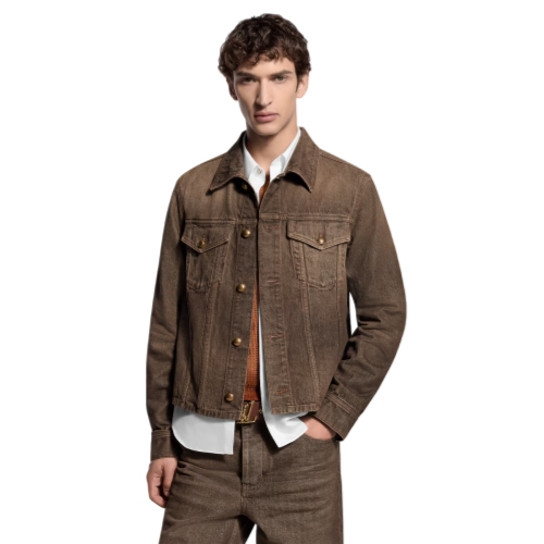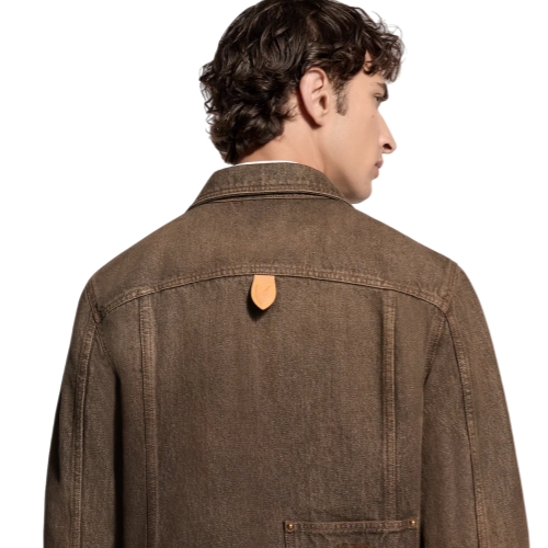 This cropped denim shirt is a versatile layering option with its trucker-inspired silhouette. Featuring the Spring-Summer 2026 show’s iconic Coffee Indigo Denim, it recalls the House’s trunk-making heritage with yellow topstitching, aged gold-toned buttons and a VVN-colored leather signature patch. Crafted in organic cotton with a soft, vintage finish, it can be paired with matching pants.