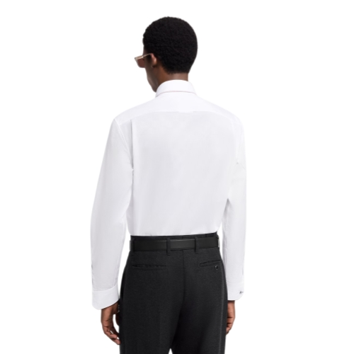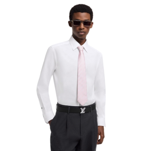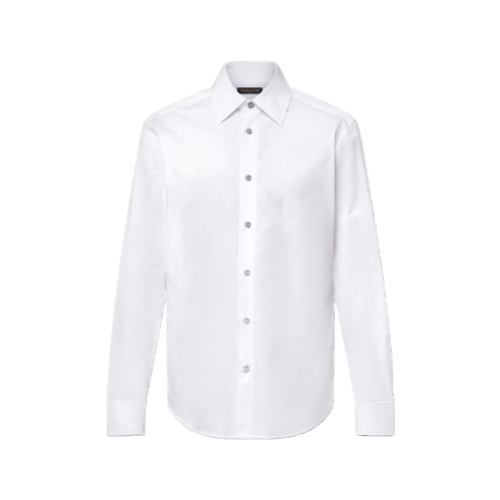 A wardrobe essential, this crisp white cotton shirt is adorned with a discreet jacquard Damier Seeds motif all over. It can be layered with a Damier-adorned suit for impeccable elegance, or styled with plain tailoring to introduce a subtle signature accent to a look. This timeless classic can by styled any number of ways, including elevating everyday looks.