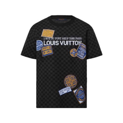 This graphic short-sleeved crewneck celebrates the art of travel, inspired by this collection’s transatlantic voyage. The cotton-blend knit features a tonal black Damier motif incorporating intarsia signatures in the form of luggage labels in a contrasting lustrous yarn. This piece brings a striking signature accent to casual and everyday looks.
