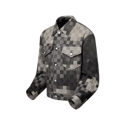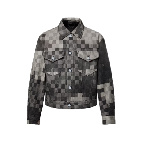 This standout denim jacket from the SS24 Show showcases the Maison’s savoir-faire, with a sophisticated washed jacquard Damoflage motif in shifting black tones. ‘Marque L. Vuitton déposée’ signatures are discreetly woven into some of the squares, while jewel-like buttons add a sophisticated twist. This silhouette, which flatters all body types, has matching pants for a total runway look.