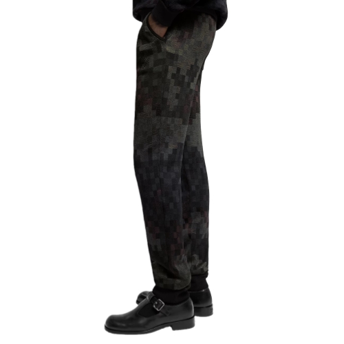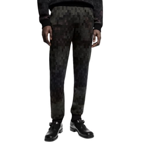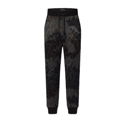 Casual yet refined, these cotton-blend jogging pants are elevated with this season’s ultra black Damoflage in a jacquard knit rich in tonal and textural detail. An embroidered Marque L.Vuitton Déposée adorns the left leg, while the soft, ribbed drawstring waist and cuffs ensure comfort. These relaxed pants make a striking set paired with a matching pullover.