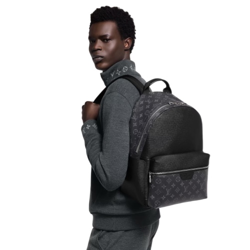 The cool styling of the Discovery Backpack takes on an elegant signature look as part of the Taigarama line. Finely embossed Taiga cowhide is paired with the House’s iconic Monogram canvas in classic black. Ideal for short trips or to carry everyday essentials, it offers multiple compartments, including a special tablet computer pocket.
