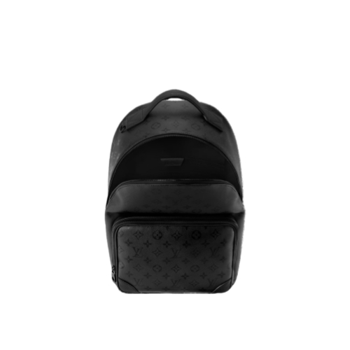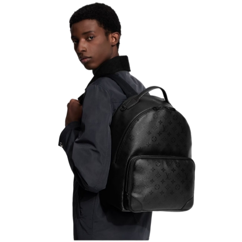 The Discovery Cargo Backpack, featuring a roomy front zipped pocket, is crafted from Monogram Midnight coated canvas. Its discreet tonal Monogram pattern imbues the pack with understated style. Two open side pockets add functionality, while adjustable shoulder straps ensure a comfortable carry for business or leisure.