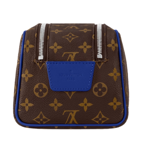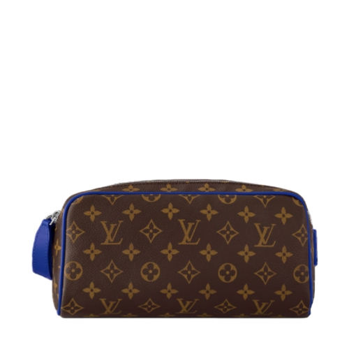 Sturdy and practical, the Dopp Kit in Monogram Macassar coated canvas is adorned with colored piping and colored leather on the handle attached to the double zipper. Designed for storing grooming essentials and toiletries, it has a washable lining in the same color as the color of the exterior details.