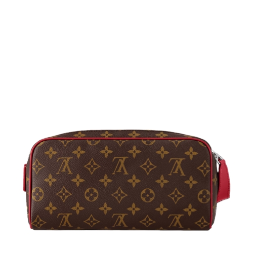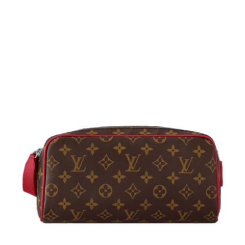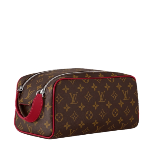 Sturdy and practical, the Dopp Kit in Monogram Macassar coated canvas is adorned with colored piping and colored leather on the handle attached to the double zipper. Designed for storing grooming essentials and toiletries, it has a washable lining in the same color as the color of the exterior details.