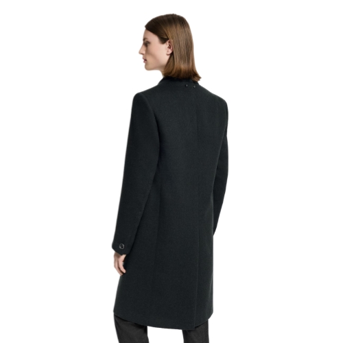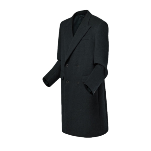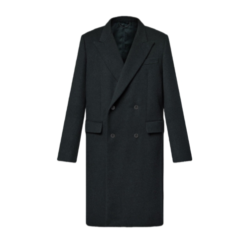 This chic double-breasted coat, perfect for wearing over a suit, is an essential piece in the formal men’s closet. Tailored from responsibly-sourced virgin wool in a timeless dark gray, it has a smart peak lapel and LV-signed buttons, while an allover LV Blason motif embellishes the lining. A pearly signature brooch adds a subtle dandy finishing touch to the back.