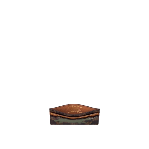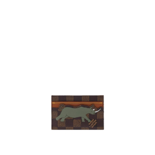 The Double Card Holder is made from Damier Heritage canvas with a print of a rhino on one side as part of The Darjeeling Limited collection. On the other side, it features the white L.V. lettering seen on the Louis Vuitton bags in the classic film. Four card slots and a central pocket make it eminently functional.