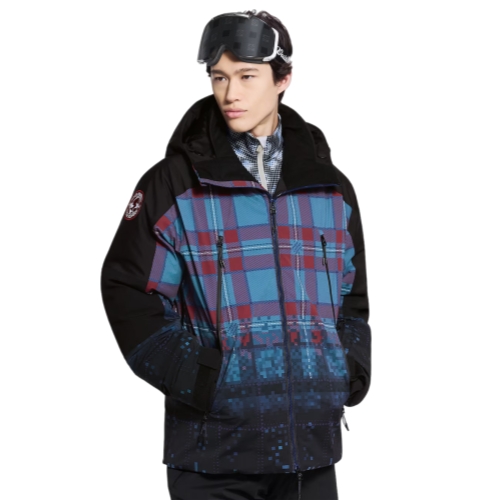 A fresh and modern LV Tartan Pixel print adorns this graphic ski jacket, while embroidered LV Ski patches embellish each arm. The plaid motif incorporating Marque L.Vuitton Déposée signatures transitions into eye-catching pixelations on the lower body and sleeves. Perfect for colder days, this high-performance piece is lined with EcodownÓ for warmth and comfort and makes a standout set with matching pants.