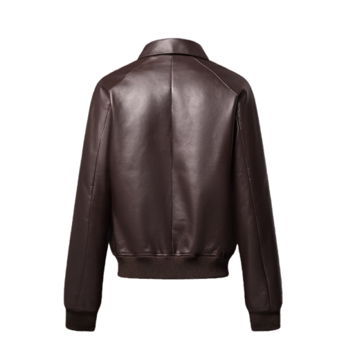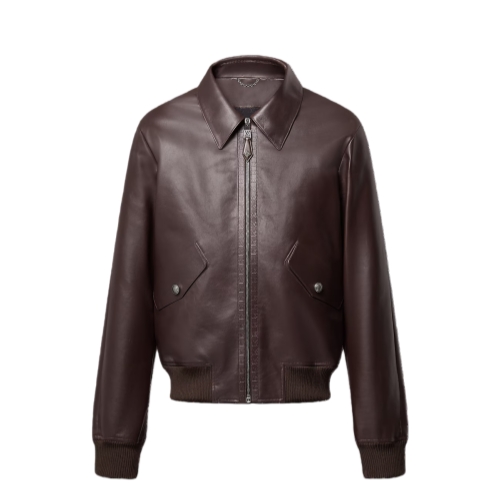 This chic dark brown leather bomber jacket brings a contemporary accent to a formal look. It draws on Louis Vuitton savoir-faire with LV-embossed leather trim inspired by the heritage trunks and a subtly aged patina around the stitching. Quilted Monogram Flower lining makes this a versatile midseason piece that is easy to mix and match with smart looks.