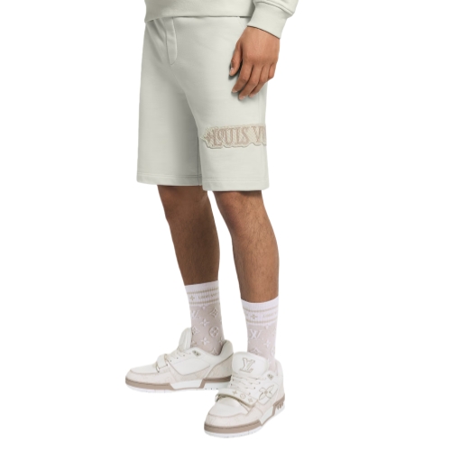 Crafted from organic cotton jersey in elegant cream tones, these comfortable drawstring shorts are perfect for lounging on the deck of this collection’s cruise ship. A textured Louis Vuitton patch adds a sophisticated signature accent to the left leg. A matching sweatshirt makes a relaxed yet refined set.