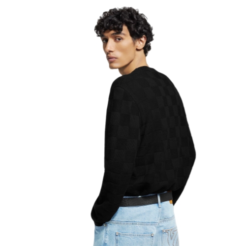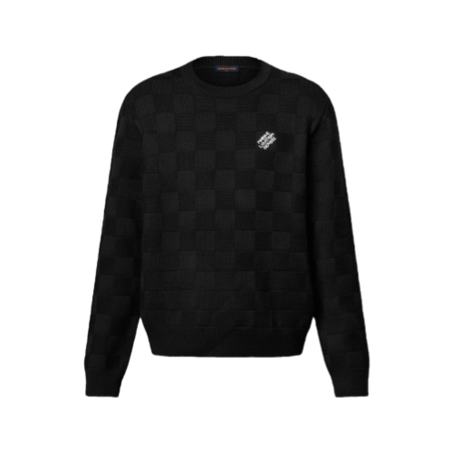 This black pullover crafted from certified merino wool is a fine and light layer that easily adapts across seasons. The monochrome knit is adorned with an allover Damier motif, while a white beaded Marque L.Vuitton Déposée signature adorns the chest. This timeless piece brings an elegant signature accent to everyday looks.