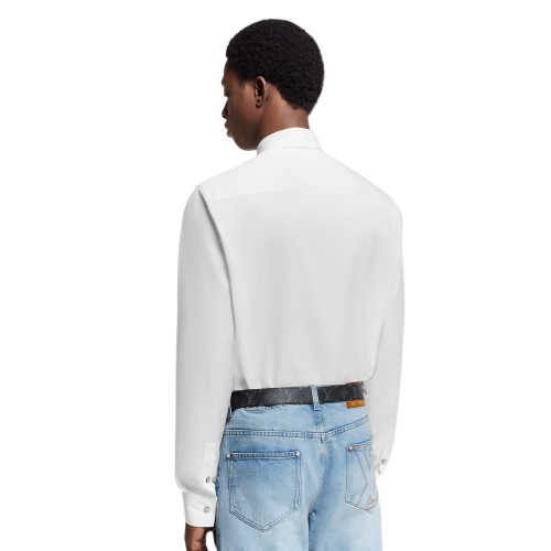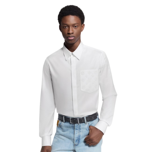This white long-sleeved shirt brings a smart twist to any look. It is crafted from smooth cotton poplin with a concealed placket for a clean, minimalist effect. A patch pocket on the chest, embellished with an embossed Monogram motif, brings an elegant signature accent to this timeless style, which effortlessly transitions between casual and sophisticated occasions.
