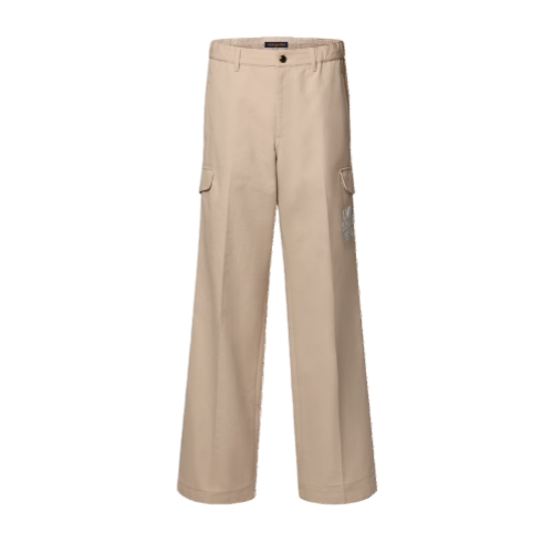 These cargo pants are a timeless wardrobe essential for completing everyday looks. Crafted from organic cotton with a softly textured weave in classic beige tones, they have an easy fit thanks to an elasticated rear waist. An embroidered white LV Alphabet signature from the Spring-Summer 2026 collection adds a distinctive finishing touch to the left leg.