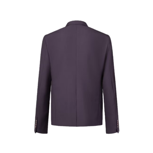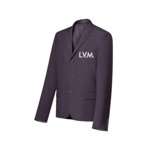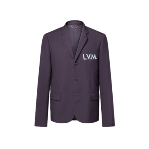 This elegant single-breasted jacket from the India-inspired Spring-Summer 2026 show brings a preppy accent to an ensemble. The fine wool fabric comes in this season’s subtle purple indigo, while a striped lining adds a sartorial detail to the sleeves. An embroidered L.V.M. signature, recalling personalized Louis Vuitton trunks, lends a graphic accent to the breast pocket.