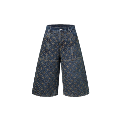 These exclusive denim shorts from the Fall-Winter 2025 show’s collaboration between Pharrell and Nigo showcase Louis Vuitton savoir-faire. They are adorned with a Dandy Monogram motif that draws on Nigo’s Japanese heritage, which is seamlessly embroidered all over in contrasting tobacco yarn with incorporated Louis Vuitton signatures. Pearly rivets add a chic finishing touch to this runway piece, which has a matching jacket.
