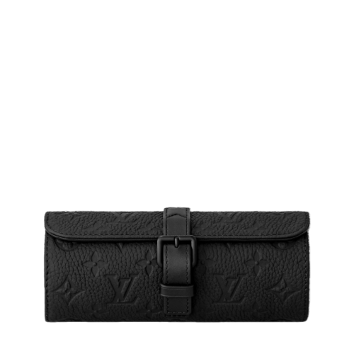Designed for frequent travelers who want to keep their timepieces and jewels intact and secure throughout the journey, the 3 Watch Case is made from Monogram-embossed Taurillon leather. The luxuriously soft interior can hold three timepieces. The matte-black buckle will please those who appreciate contemporary design.