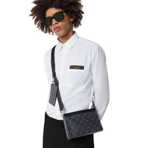 The Gaston Wearable Wallet is inspired by the House’s Pochette Voyage. Fashioned from Monogram Eclipse Reverse canvas, it has a removable and adjustable textile strap with a detachable card holder attached to it, ideal for contactless payment or commute card. The Gaston is the perfect size for everyday essentials such as a smart phone.