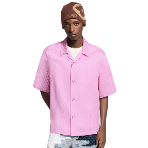 This fluid, pale pink short-sleeved shirt from the Fall-Winter 2025 show has an easy open collar and an effortless summery vibe. The lustrous jacquard fabric features a tone-on-tone Dandy Monogram motif from this season’s collaboration between Pharrell and Nigo, inspired by geometrical motifs from the latter’s native Japan. Lustrous mother-of-pearl effect buttons complete this versatile buy-now-wear-now style.