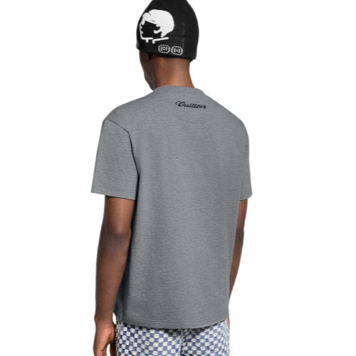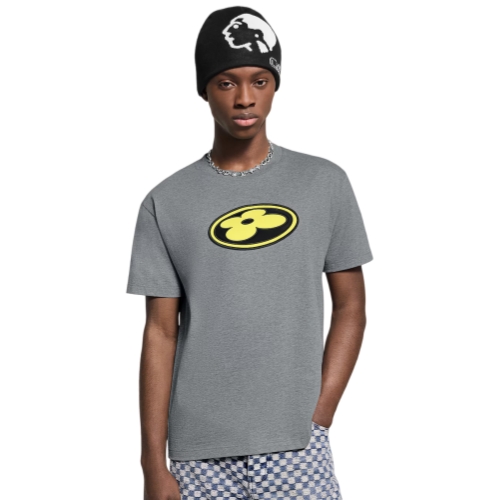 This effortless T-shirt accompanies everyday looks with graphic signatures from the Fall-Winter 2025 show. Crafted in soft gray cotton, it features a lustrous satin LV Flower patch on the chest with a bold design in citrus yellow and black, while an embroidered Vuitton signature adorns the back.