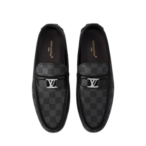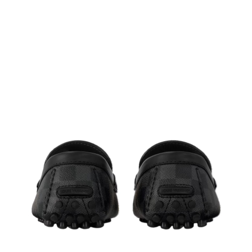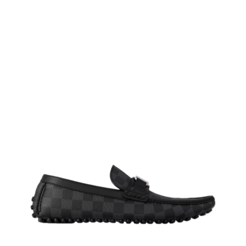 The Hockenheim moccasin is a Louis Vuitton classic. Here, this lightweight car shoe comes in iconic Damier Graphite canvas, which is complemented by an LV Initials accessory in silver-tone metal. A traditional tubular construction with a hand-stitched vamp and a supple outsole with small rubber nubs complete this design.