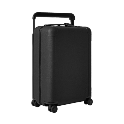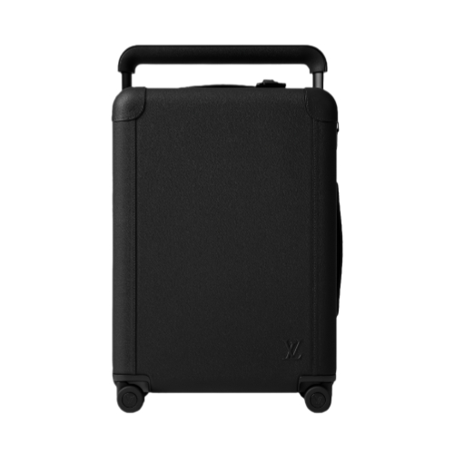 The Horizon 55 trolley bag is made from grained black leather with black-color hardware. The ultra-practical Horizon 55 is an unexpectedly spacious carry-on, with four double compact wheels and a wide handle that makes it easy to roll. Part of the Aerogram Collection, it’s signed with tone-on-tone "LV" initials on the bottom front corner.