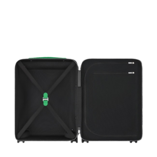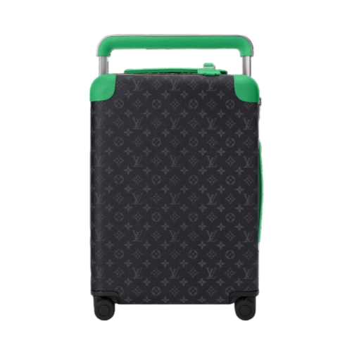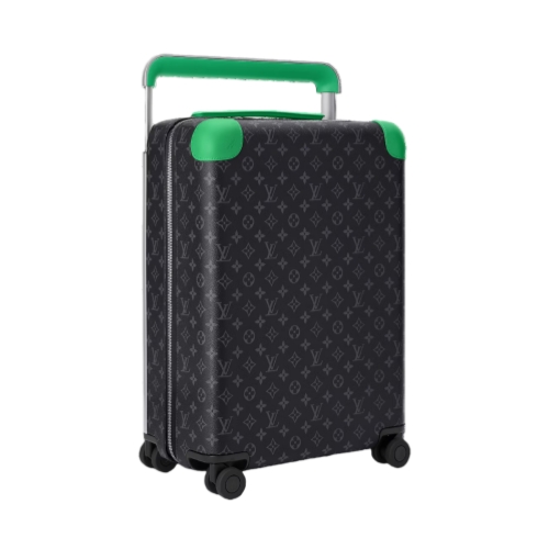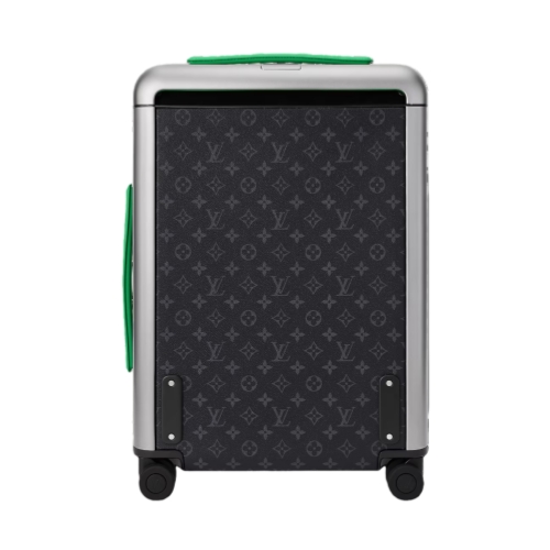 The Horizon 55 rolling case is made from Monogram Eclipse canvas, featuring reinforced corners and handles in colored leather. This cabin-sized case is surprisingly spacious thanks to its unique design, which places the cane on the outside. The wide cane handle and compact wheels make the Horizon exceptionally comfortable to use.